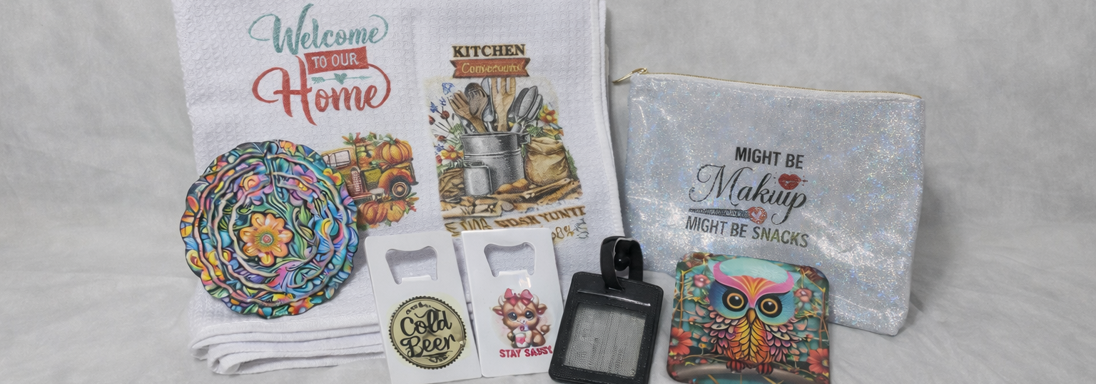 Towels. Makeup bags. Luggage tags. Tumblers. If it exists—or could exist—we can customize it. Contact us today for your custom quote.